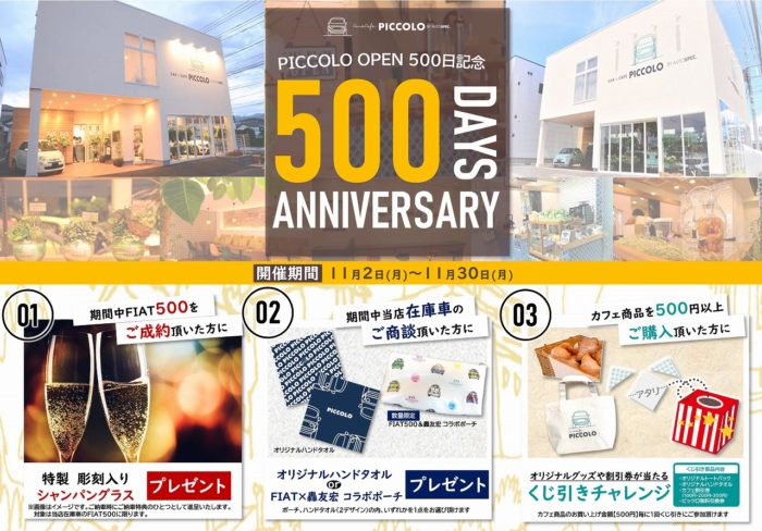 是非一緒にPICCOLO OPEN 500Days ANNIVERSARY をお祝いしましょう( *´艸`)