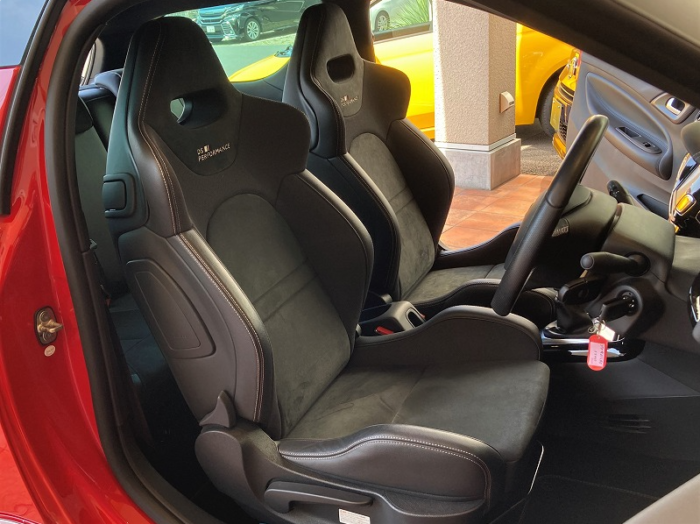 シートは専用のレザーとアルカンターラを組み合わせたセミバケットタイプ