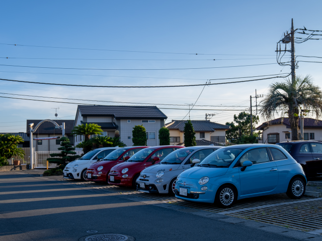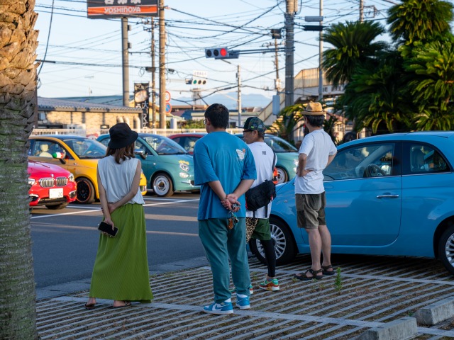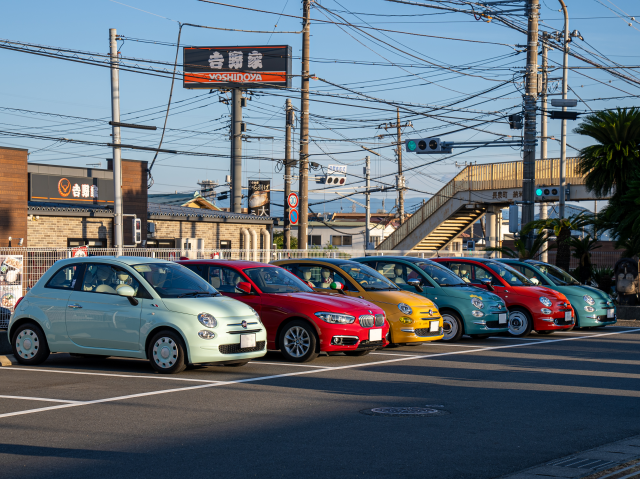 夕方頃、カラフルで個性豊かなクルマたちがPICCOLOの駐車場にならびました♪